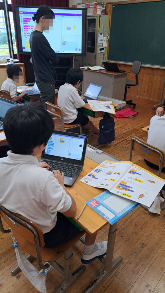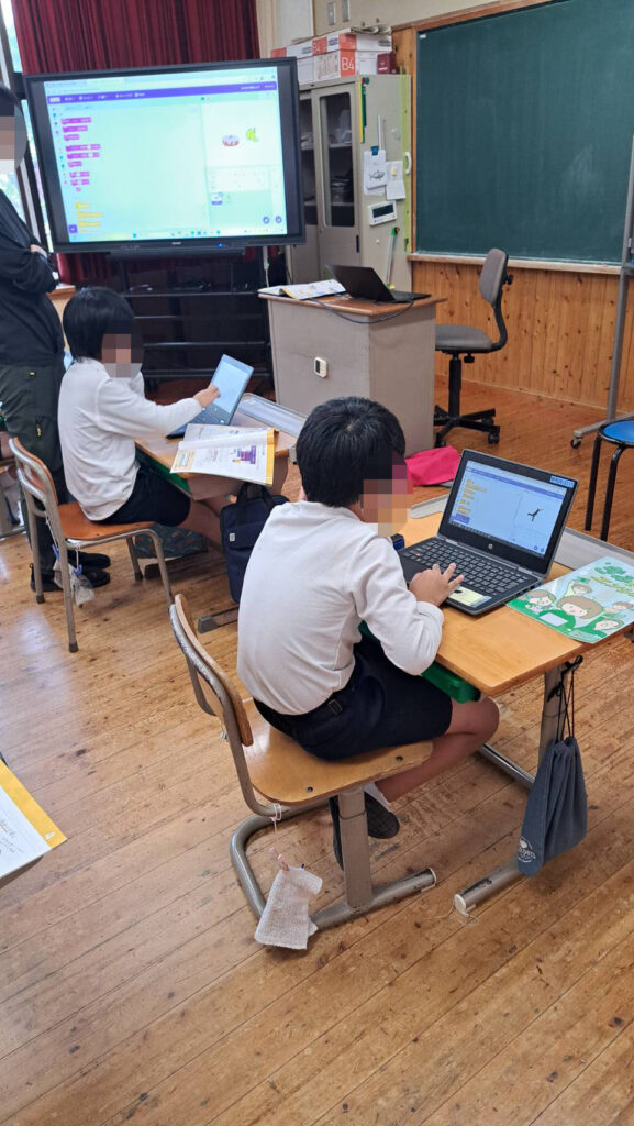 10月14日(火)急な雨が降り出した午後、浜田市立波佐小学校にてプログラミング授業を開催しました✨